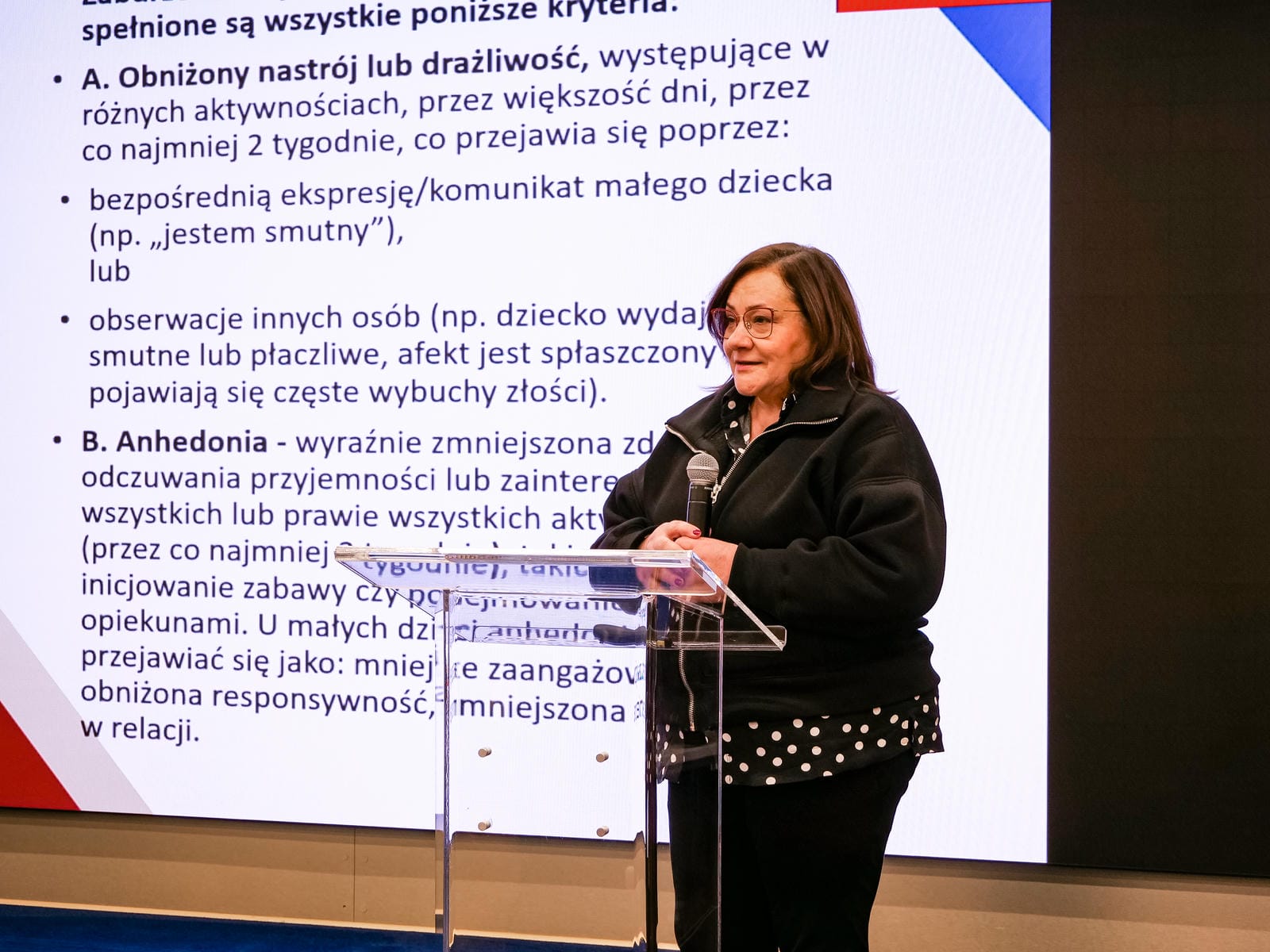 Mgr Szymon Niemiec zaprezentował współczesne kierunki w leczeniu depresji, zwracając uwagę na podejście integracyjne i wyzwania związane z terapią przypadków lekoopornych. Następnie dr Teresa Jadczak-Szumiło przybliżyła relacyjne i rozwojowe uwarunkowania depresji, szczególnie w kontekście traumy i zaburzeń przywiązania.