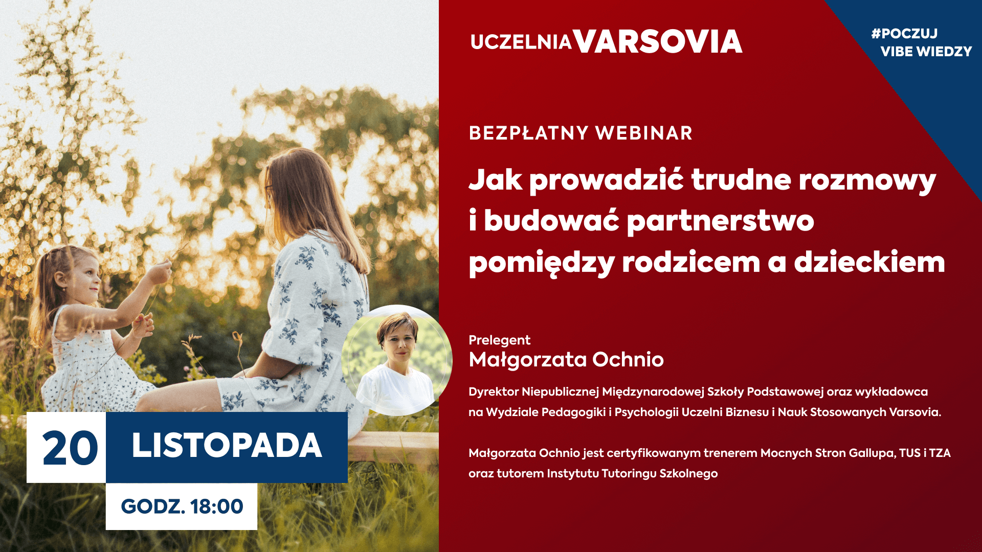 Ten webinar to praktyczne wsparcie dla dorosłych, którzy chcą lepiej rozumieć i słyszeć dzieci – nie tylko wtedy, gdy wszystko układa się dobrze. Dowiesz się, jak tworzyć przestrzeń do szczerej komunikacji, jak stawiać granice z empatią i jak słuchać tak, aby naprawdę usłyszeć.